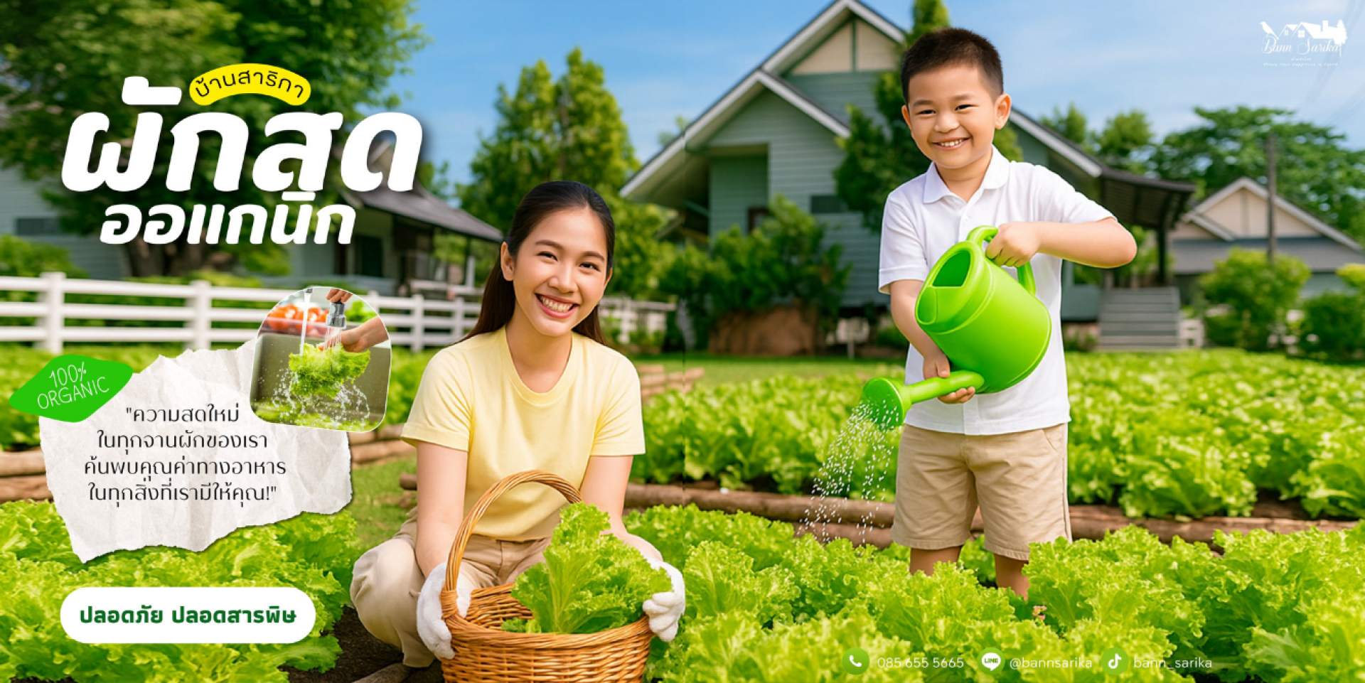 แปลงผักออแกนิกสดจากสวน ที่บ้านสาริกา