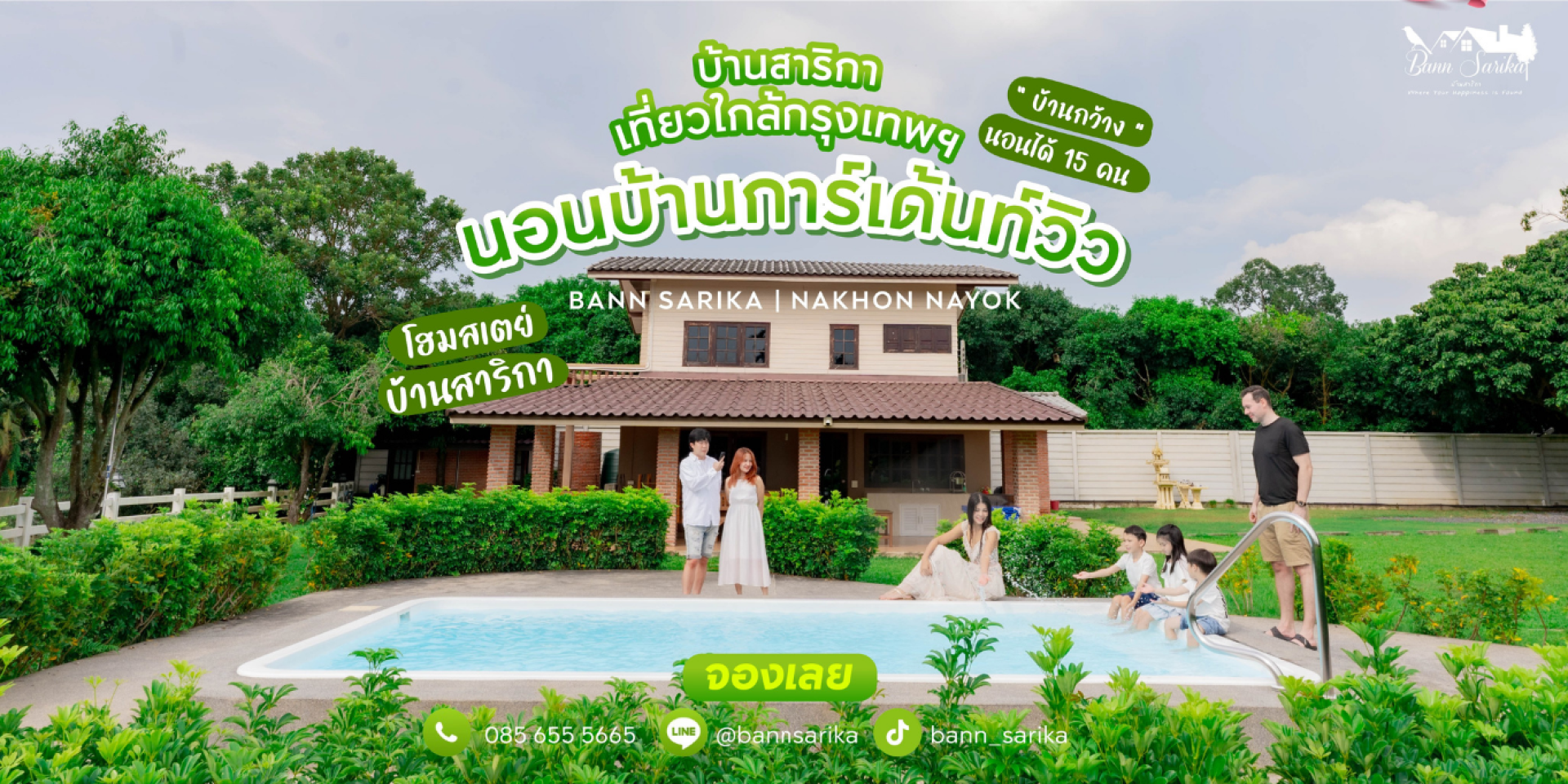 Discover Bann Sarika Village View in Nakhon Nayok — 9 cozy homes surrounded by nature. Perfect for families, friends, or company retreats.